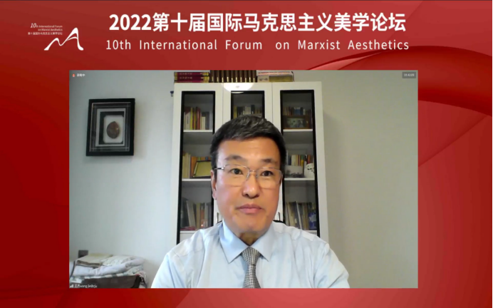浙江大学传媒与国际文化公司、马克思主义美学专业委员会主任委员王杰教授介绍了国际马克思主义美学论坛的发展历程,对当代马克思主义美学研究提出了自己的思考,认为在今天这样一个时代,马克思主义美学依然具有强大的生命力,同时也要倾听世界美学的声音,在与世界美学的对话中实现自身的发展。