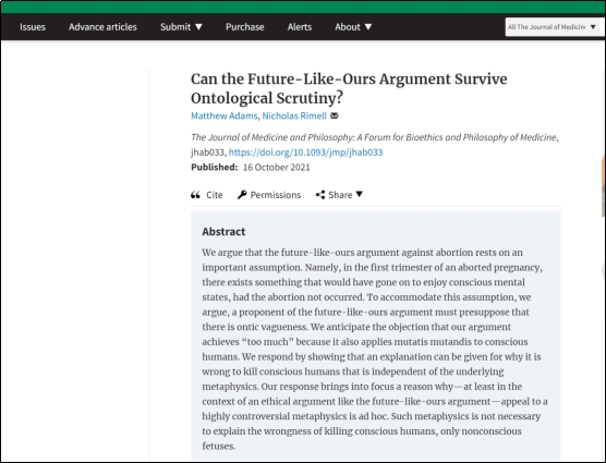 bv伟德国际1946官网讲师Nicholas Rimell于2021年10月6日在Medicine and Philosophy期刊上发表了“Can the Future-Like-Ours Argument Survive Ontological Scrutiny?”一文。