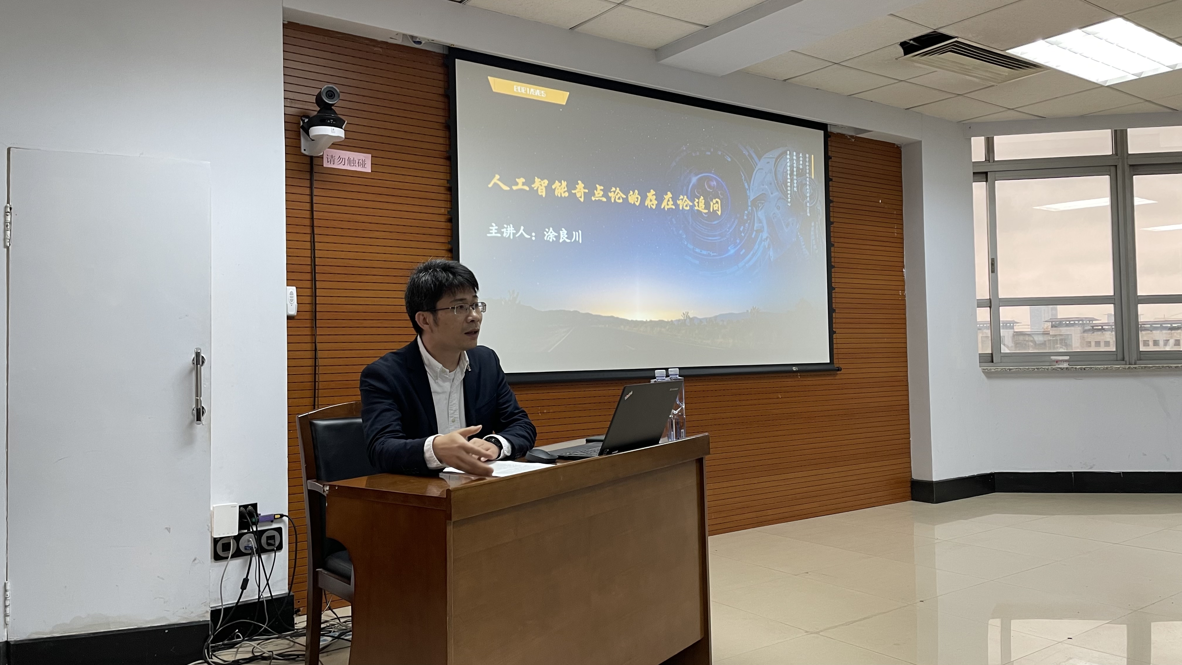 在涂老师主讲结束后,讲座进入到嘉宾点评与交流环节。田冠浩教授对本次讲座进行了简要评论。田老师认为涂老师的这次讲座展现了其对学术前沿问题的深邃思考;认同了人工智能问题是当今社会的重要问题,我们需要运用哲学思维来分析和把握它;并且强调了涂老师关于人工智能奇点问题研究对当代所具有的启发性,在科技迅猛发展的今天,进一步思考技术和形而上学的关系问题是哲学所面临的新的挑战,而人工智能奇点论所存在的理论困境及其揭示的人工智能的存在论意义,也凸显出人类自我理解的认识的紧迫性和重要性。随后,涂老师对田老师的点评给予了热情而专业的回应。
