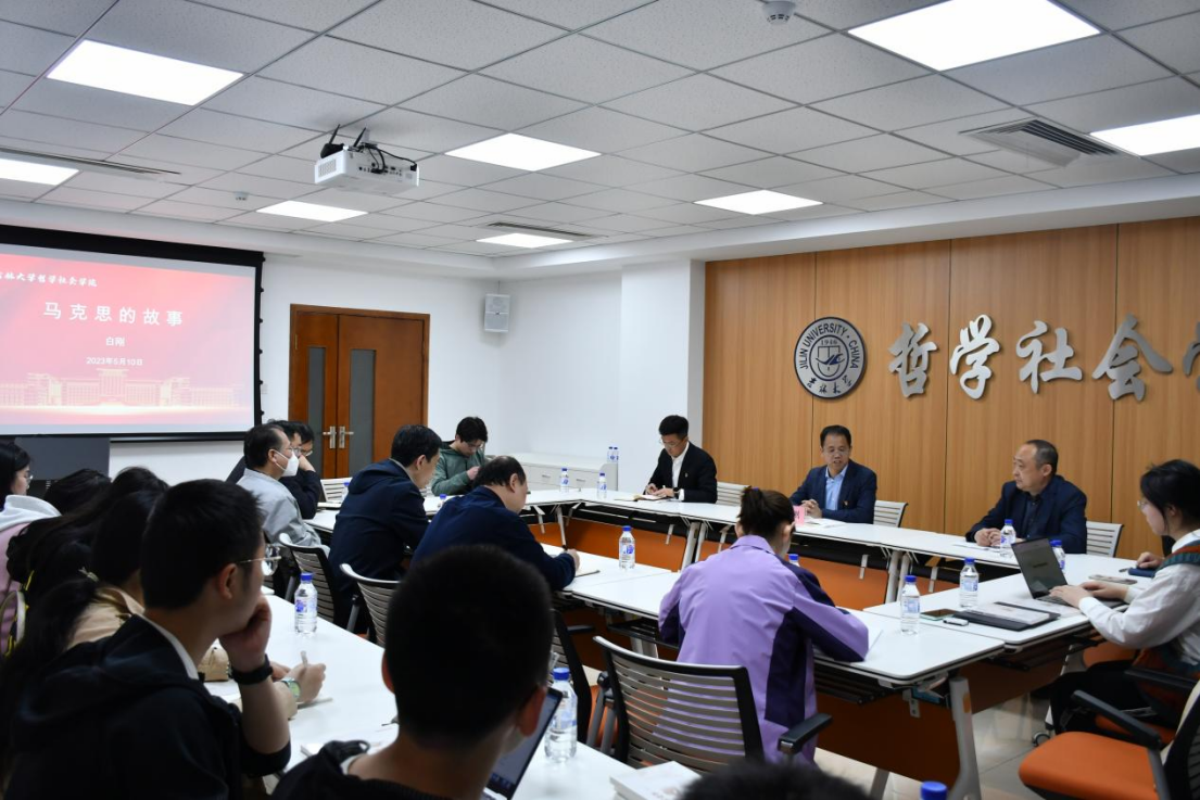 为深入开展学习贯彻习近平新时代中国特色社会主义思想主题教育,坚持学思用贯通、知信行统一,把习近平新时代中国特色社会主义思想转化为坚定理想、锤炼党性和指导实践、推动工作的强大力量,5月10日在东荣大厦915会议室,bv伟德国际1946官网经理白刚教授结合《马克思的故事》一书做专题讲授和辅导。哲学社会公司党委理论学习中心组全体成员、哲学专业本科生党支部全体党员参加学习。活动由公司党委副书记兼副经理、公司主题教育领导小组办公室主任、哲学专业本科生党支部书记刘培强主持。