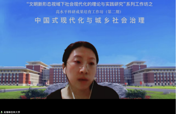 吴海琳教授认为贾玉娇教授的报告全面系统,并从人才引流与地域共同体建设的关系、县域类型化划分、乡村振兴中的产业布局等方面进行交流。吴海琳教授认为芦恒教授的报告具有较强的研究延续性和创新性,并针对城乡社会治理的差异、韧性基本关系的提出逻辑等方面提出建议。