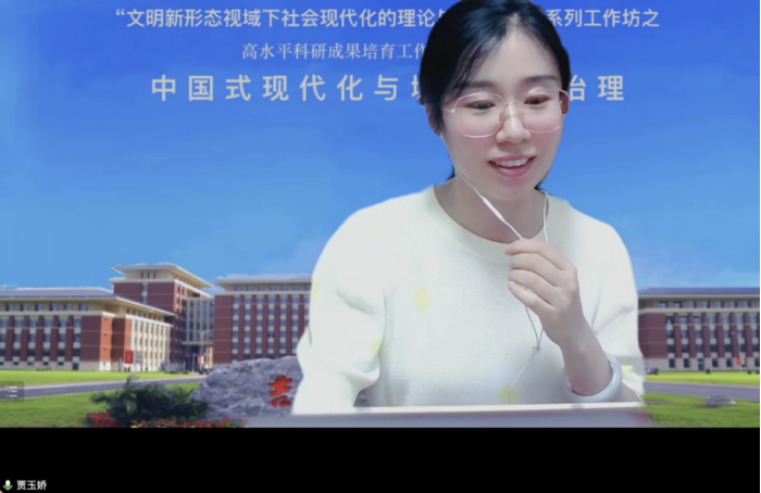 贾玉娇教授以《构建以县域乡村振兴为中心的地域发展共同体》为题进行发言。贾玉娇教授在超越城乡二元分析框架的基础上,关注“县域乡村振兴”这一新时代地域发展的主要矛盾,考察“地域发展共同体”这一地域组织形态演变的新趋向。在此基础上,贾玉娇教授提出地域协同均衡发展的内生驱动力,瞄准县域引流的目标人群,并指向构建发展型地域社会政策体系的实践路径。