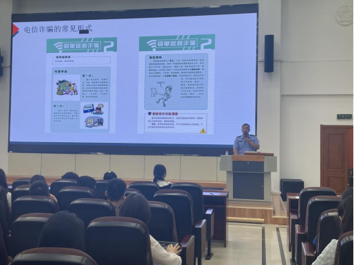 首先,治安科卢阳老师从财务安全、人身安全、国家安全等三个方面入手,以丰富详实的案例向同学们介绍防范电信诈骗的常识。卢老师建议同学们务必妥善保管自身贵重物品,在公共场合谨防陌生人搭讪,警惕扒手,提醒同学们要学会明辨是非,警惕刷单返现、“校园贷”等层出不穷的诈骗手段,切实维护财产安全。