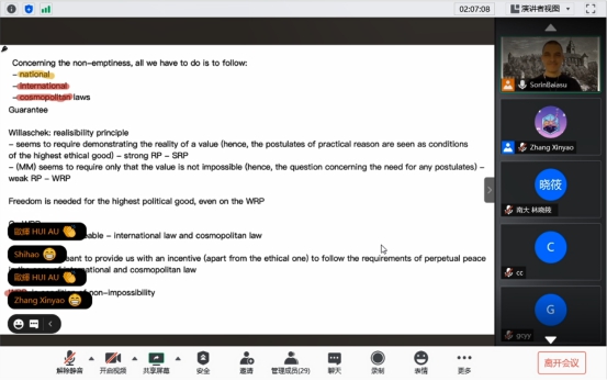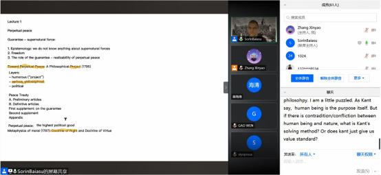 2020年12月7日、8日、11日、14日、15日,题为《Kant’s Idea of Perpetual Peace Today: A Solution to the Puzzle of the Guarantee》的bv伟德国际1946官网国际化示范基地海外优质课程于线上成功举办。主讲人为来自英国基尔大学的Sorin Baiasu教授。