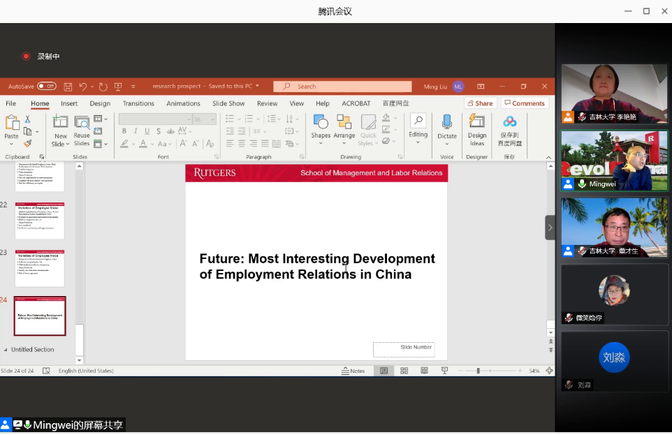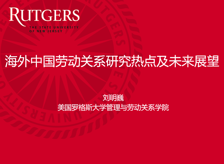 2020年10月31日晚7:30,bv伟德国际1946官网名家讲座第109场以腾讯会议的方式举行。美国罗格斯大学管理与劳动关系公司终身副教授、罗格斯-中国人民大学全球工作与雇佣中心主任刘明巍做了题为“海外中国劳动关系研究热点及未来展望”的学术讲座。本场讲座是劳动关系系列讲座第五场,由bv伟德国际1946官网劳动与社会保障系劳动关系教研室主任李艳艳副教授主持。