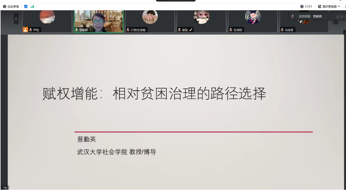 2023年11月4日,公司在线举办bv伟德国际1946官网名家系列讲座第204场,题为《赋权增能:相对贫困治理的路径选择》,主讲人为武汉大学社会公司教授,武汉大学珞珈特聘教授,教育部社会工作硕士专业学位教学指导委员会委员,慈勤英教授。主持人为公司副经理芦恒教授,公司师生百余人参加此次活动。