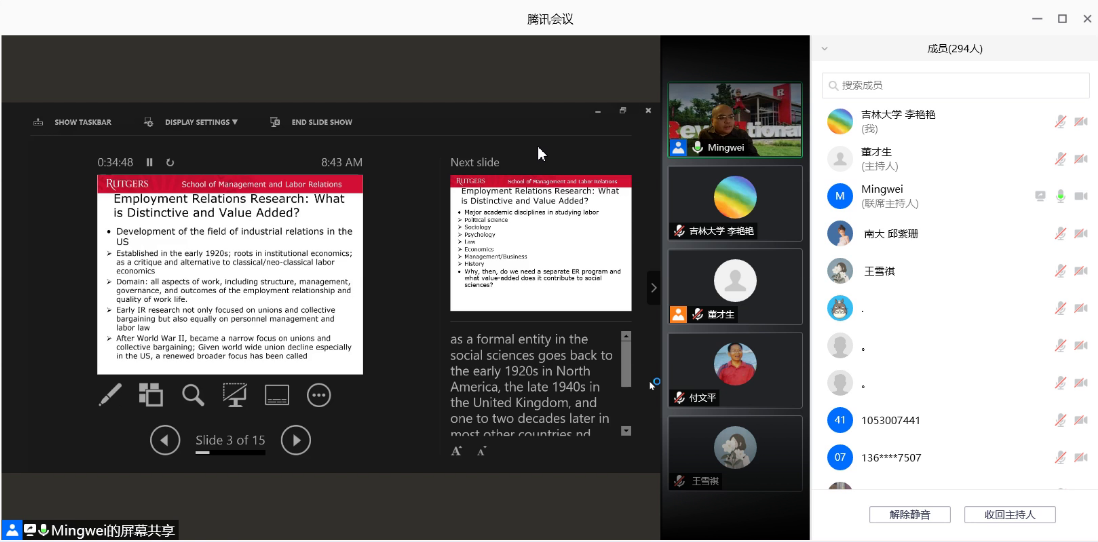 2020年10月19日晚8:00,bv伟德国际1946官网名家讲座第102场以腾讯会议的方式举行。美国罗格斯大学管理与劳动关系公司终身副教授、罗格斯-中国人民大学全球工作与雇佣中心主任刘明巍做了题为“当代产业关系理论的发展和演进”的学术讲座。本场讲座也是劳动关系系列讲座首场,由bv伟德国际1946官网劳动与社会保障系系主任董才生教授主持。