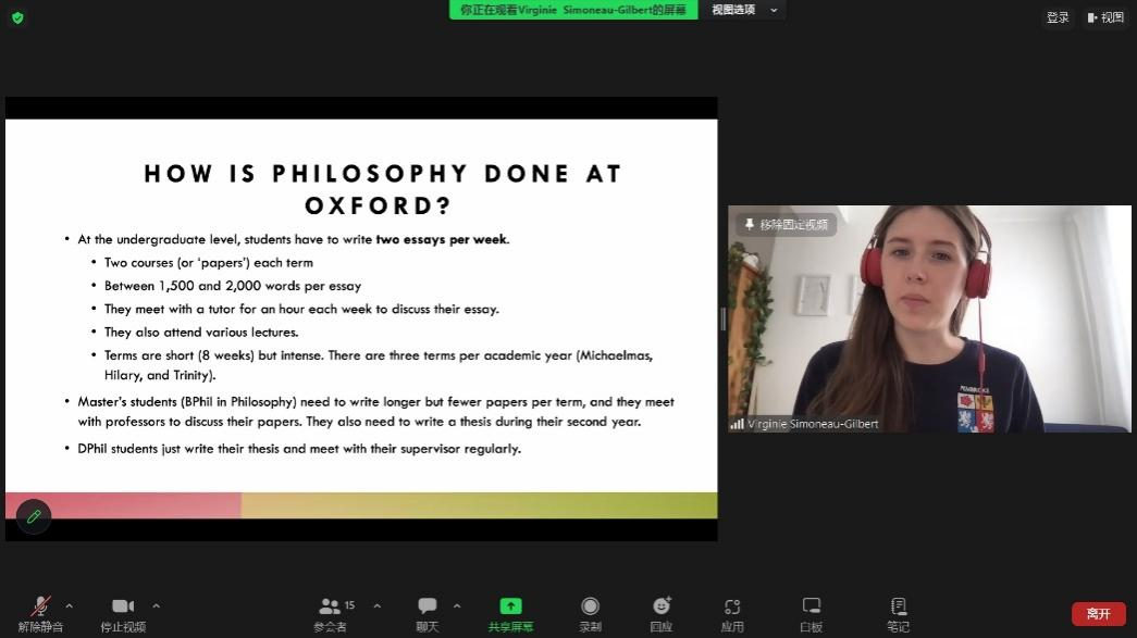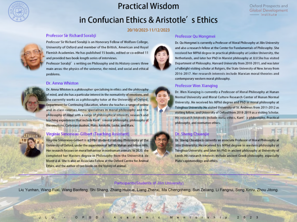 为发展哲学一流学科,培养具备宽广国际视野、突出学术能力的高素质人才,在国际合作与交流处“bv伟德国际1946—牛津大学学术合作伙伴计划”项目的大力支持下,bv伟德国际1946官网曲红梅教授团队特别邀请湖南师范大学文贤庆教授、bv伟德国际1946官网盛传捷副教授于2023年10月至12月间与英国国家学术院院士、牛津大学教授Richard Sorabji和牛津大学讲师Amna Whiston等学者开展系列线上座谈会议,部分bv伟德国际1946官网本科生受邀参加。
