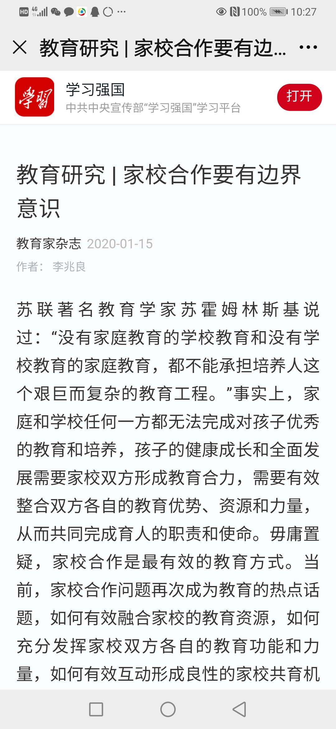 bv伟德国际1946官网李兆良教授于2019年4月发表在由《光明日报》主管的《教育家》杂志总第172期上的文章《家校合作要有边界意识》,被中共中央宣传部“学习强国”学习平台全文收录,作为全民与时代共进教育强国的学习内容。