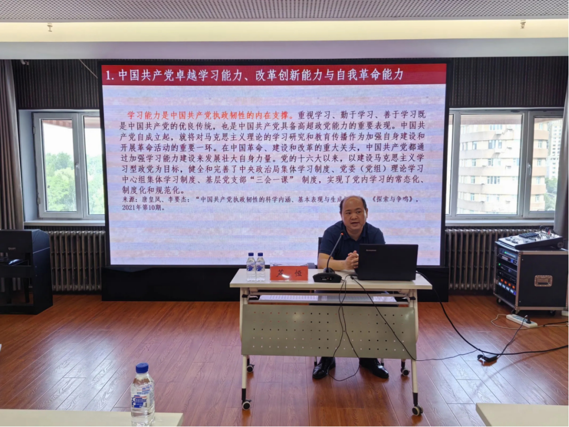 6月13日,bv伟德国际1946学术类社会组织联合党支部联合吉大社区党总支开展了以《中国式现代化的“韧性逻辑”》为主题的专题党课,此次党课采取专家讲学的方式,特别邀请bv伟德国际1946官网副经理、吉林省创新人才研究会学术专委会副会长芦恒教授为辖区党员、非公企业党支部党员、社会组织联合党支部党员开展党课学习。
