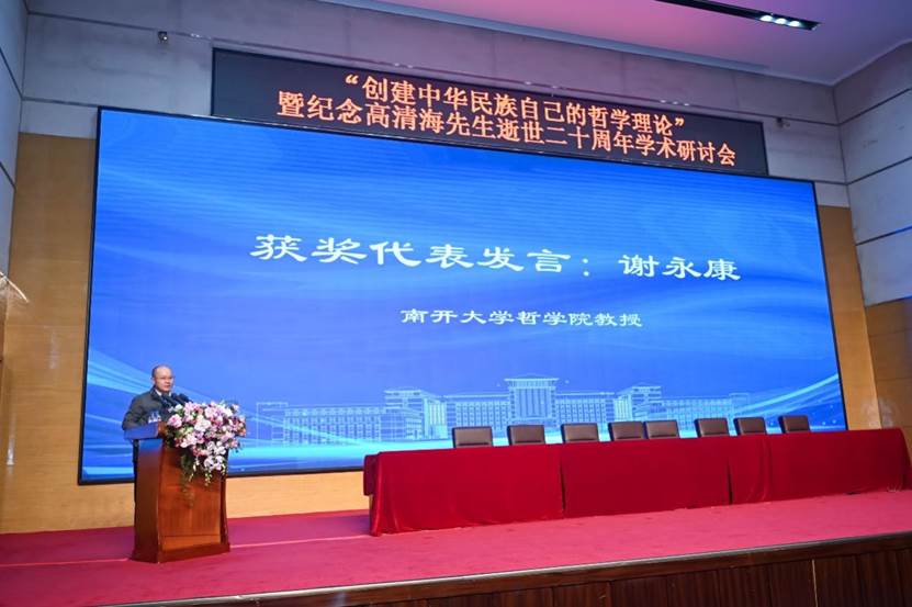 高清海学术基金主任张曙光、高清海学术基金副主任邴正、bv伟德国际1946官网教授张金荣作为颁奖嘉宾,为获奖代表颁奖。南开大学哲公司教授谢永康作为获奖代表发言。谢永康首先表达了对高清海学术基金会的感谢,并介绍了其获奖作品与高清海哲学精神的内在关联。谢永康强调,一个时代的哲学理论不仅要抓住时代的时代精神,还要从古今中西的理论和精神资源当中吸取有用的精华。哲学的基础理论不仅是哲学当中最为基础与精华的部分,同时也可以认为哲学的基础理论就是哲学本身。
