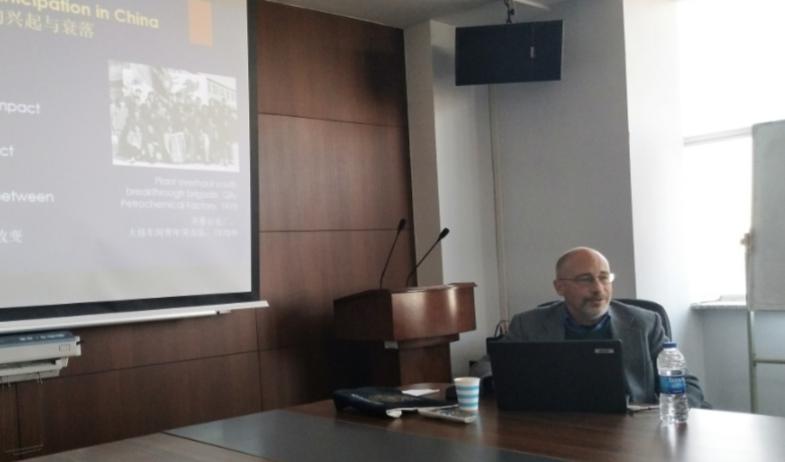 2019年10月14日下午,由bv伟德国际1946官网主办的bv伟德国际1946官网国际化示范基地学术讲座第十六讲,在东荣大厦908会议室举行。美国约翰霍普金斯大学社会学系安舟(Joel Andreas)教授以“中国工厂中的民主参与”为题展开讲座。田毅鹏经理,林兵教授,吴海琳副教授等出席讲座。