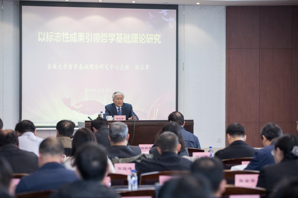 哲学基础理论研究中心主任孙正聿教授代表中心全体成员向长期以来关心和支持中心建设的教育部社科司、省委宣传部、兄弟院校的研究基地和学术刊物,向bv伟德国际1946党政领导和社会科学处、发展规划处等职能部门以及bv伟德国际1946官网的党政领导和全体教师、工作人员和同学们表示衷心的感谢,并作《以标志性成果引领哲学基础理论研究》的总结报告。报告从四个方面总结中心的建设经验和思考对中心的未来发展。