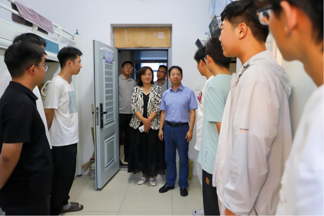 为全面掌握2025级本科新生入学状态,及时传递公司关怀,促进新同学更好地融入大学学习生活,8月26日,公司经理白刚、党委书记张晓萌带队前往员工宿舍走访看望2025级本科新生。公司党委副书记兼副经理朱大卫、副经理李龙、员工工作办公室老师们以及辅导员助理同学们共同参加本次活动。