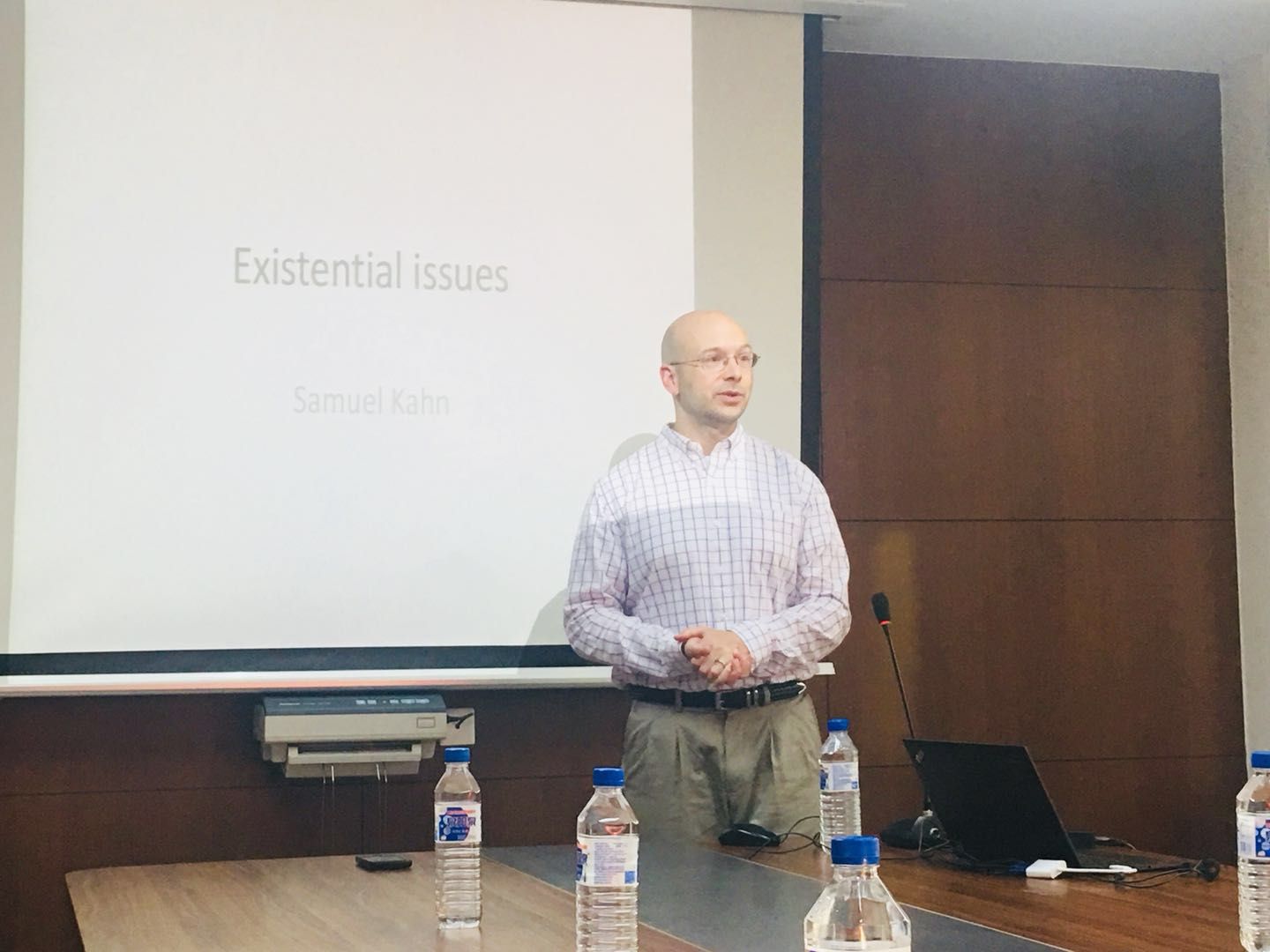 2019年6月24日至26日,由bv伟德国际1946官网、bv伟德国际1946哲学基础理论研究中心主办的bv伟德国际1946官网国际化示范基地学术讲座第12-14讲于东荣大厦908会议室举行。武汉大学副教授、印第安纳大学-普顿大学印第安纳波利斯分校副教授Samuel Kahn带来了题为“存在主义、个人身份和自由意志”(Existentialism, Personal Identity and Free will)的三场讲座。讲座由bv伟德国际1946官网Nicholas Rimell老师主持,盛传捷老师出席此次讲座并参与讨论。