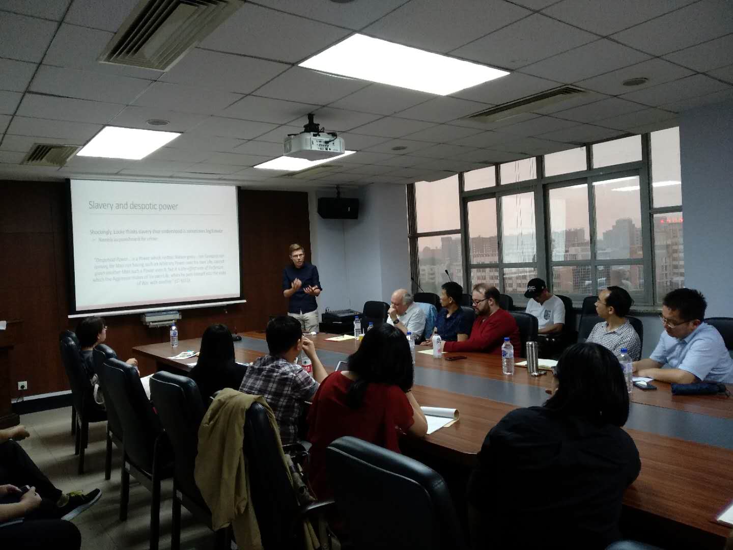 2019年6月13日下午,由bv伟德国际1946官网、bv伟德国际1946哲学基础理论研究中心主办的bv伟德国际1946官网国际化示范基地学术讲座第八讲于东荣大厦908会议室举行。荷兰阿姆斯特丹大学助理教授、鲁汶大学博士后、研究霍布斯的著名网站European Hobbes Society发起人Johan Olsthoorn再次给我们带来了一场精彩的讲座。本次讲座的主题是“John Locke's theory of civil government"。讲座由bv伟德国际1946官网晋运锋副教授主持,bv伟德国际1946官网王立教授、Nicholas Rimell老师,行政公司朱万润老师以及来自美国德克萨斯州立大学的哲学与法学教授JohnDeigh也出席了本次讲座。