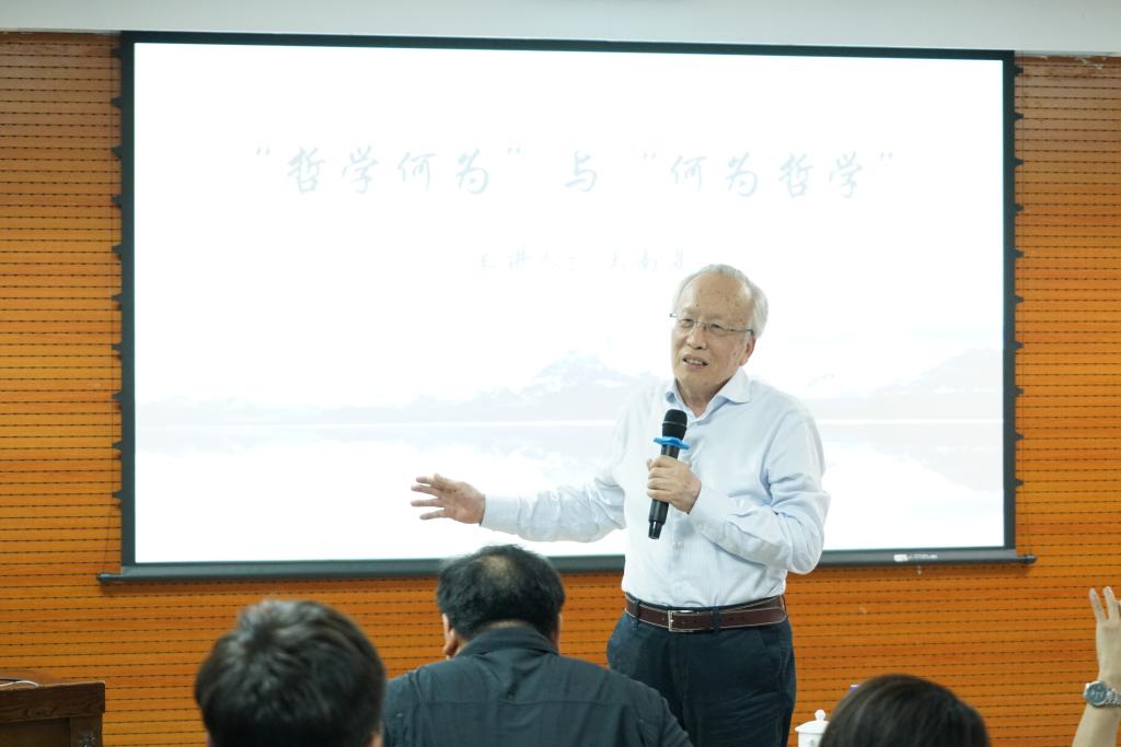 王南湜教授首先从“哲学何为”的角度,对第二十四届世界哲学大会的主题“学以成人”提出了其独到的见解。王南湜教授认为,所谓“学以成人”,实际上意味着哲学需要实现对人的理解。王南湜教授通过古希腊普罗米修斯盗火的神话隐喻,以及对中国荀子哲学中“伪”这一概念的解释指出,人并不存在某种已经被预先设定的本性或本能,而是在创造性的对象性活动中改造自然环境与社会环境,以适应自身的生存需求。王南湜教授指出,在这个意义上,人是具有开放性的未完成的生命,进而“学以成人”就是对历史中人类区别于其他生物而展现出的独特生存状态的描述,人只有通过不断学习才能实现自身的存在意义。其后,王南湜教授从人类中心主义所展现出的必然性出发,对“何为哲学”这一问题做出了具体论述。王南湜教授提出,哲学必须要探究这样两个问题:其一是人类究竟要处于什么样的存在状态;其二是人要成为什么样的人。王南湜教授进一步指出,对这两个问题的追问指向了人类的价值选择与价值冲突。南湜教授依据他对部分电影作品以及中西宗教观念差异所做出的分析,指出价值冲突不仅影响了不同文明的历史走向,同时也预示着不同文明在现代社会中所面对的现实问题,而哲学的任务就部分在于证实价值选择问题的偶然性与必然性。此外,王南湜老师通过对于马克思与黑格尔对哲学的不同理解所做对比以及对当下消费社会的批判,指出在晚年马克思的视域中,物质生产是人类为摆脱自然界支配所必需的外部要素,个人内在能力的发展必须以此为基础,进而人类的真正自由才得以成为可能。因而,王南湜教授认为,如何实现人的自由就是哲学如何使人“学以成人”所需面对的问题,今天的中国哲学界需要以此为出发点,指认出资本主义的不可能性,以及实现人类自由之理想社会的可能性,同时构建出面向未来社会的需要的价值观念。最后,王南湜老师向参加本次讲座的同学们提出了期许,他指出,在未来的半个世纪中,中国面临着与十八世纪以来德国相似的重大历史契机,中国需要建立与其民族国家地位相匹配的民族精神,这一历史性任务需要由年轻一代加以实现。在随后的问答环节中,王南湜教授就人生价值与对社会的价值与贡献问题,社会开放程度与人类生存状态,以及马克思主义哲学是否具有本体论等问题与同学们进行了亲切的交流,令同学们受益匪浅。