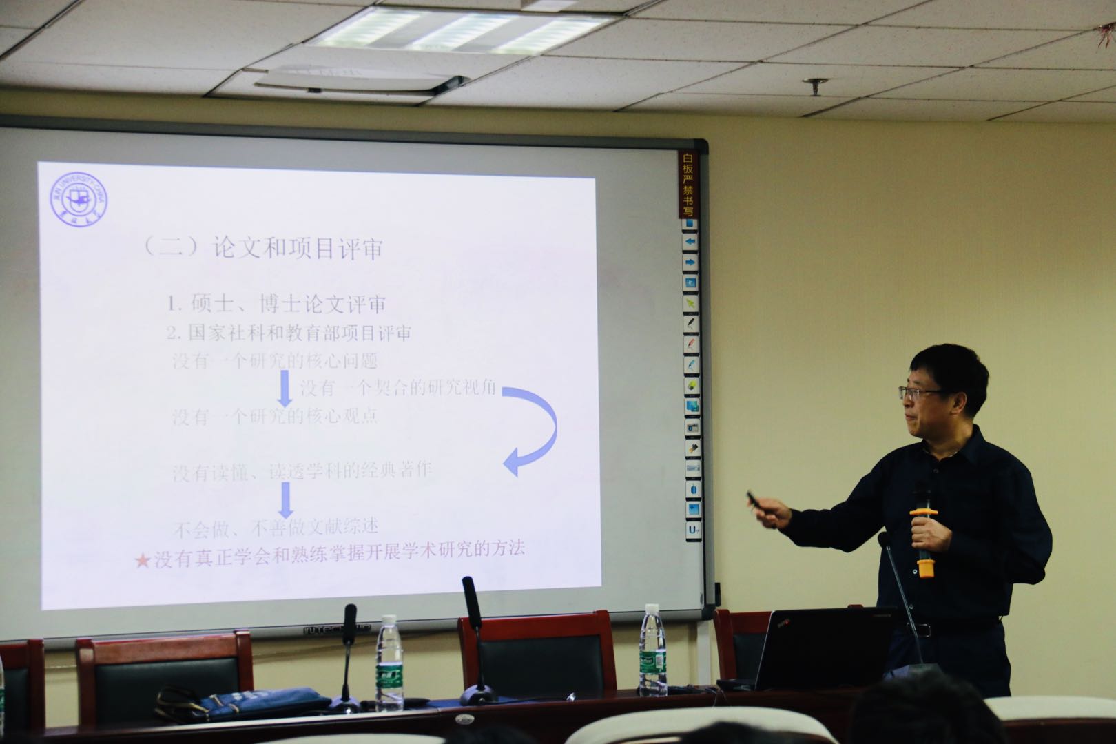 2019年5月26日,董才生教授受邀为齐鲁工业大学马克思主义公司师生做题为“学术研究的基础与关键”的学术报告,本次报告由马克思主义公司副经理王先山教授主持。董才生教授结合研究生具体的学习困惑,指出学术研究的基础是阅读经典,关键是学会做文献综述。讲座结束后,董才生教授与在场的师生进行了热烈讨论与互动。