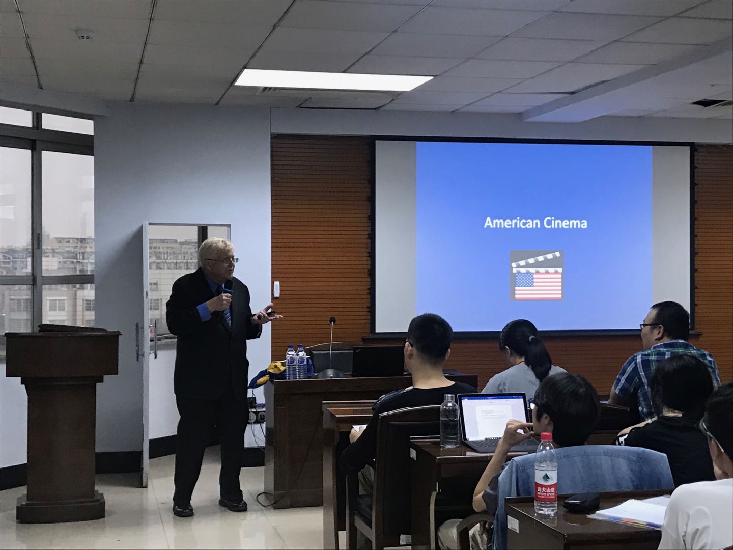 2019年5月19日晚上18:00,美国罗格斯大学文理公司Angus Kress Gillespie教授应公司邀请,在bv伟德国际1946中心校区东荣大厦A904会议室为公司师生做题为“Hollywood’s America----Survey of U.S. Film”(好莱坞下的美国——美国电影中的社会探析)”的报告。本次讲座由哲学系张慕良老师主持。此次讲座为bv伟德国际1946国际教学周系列活动之一。