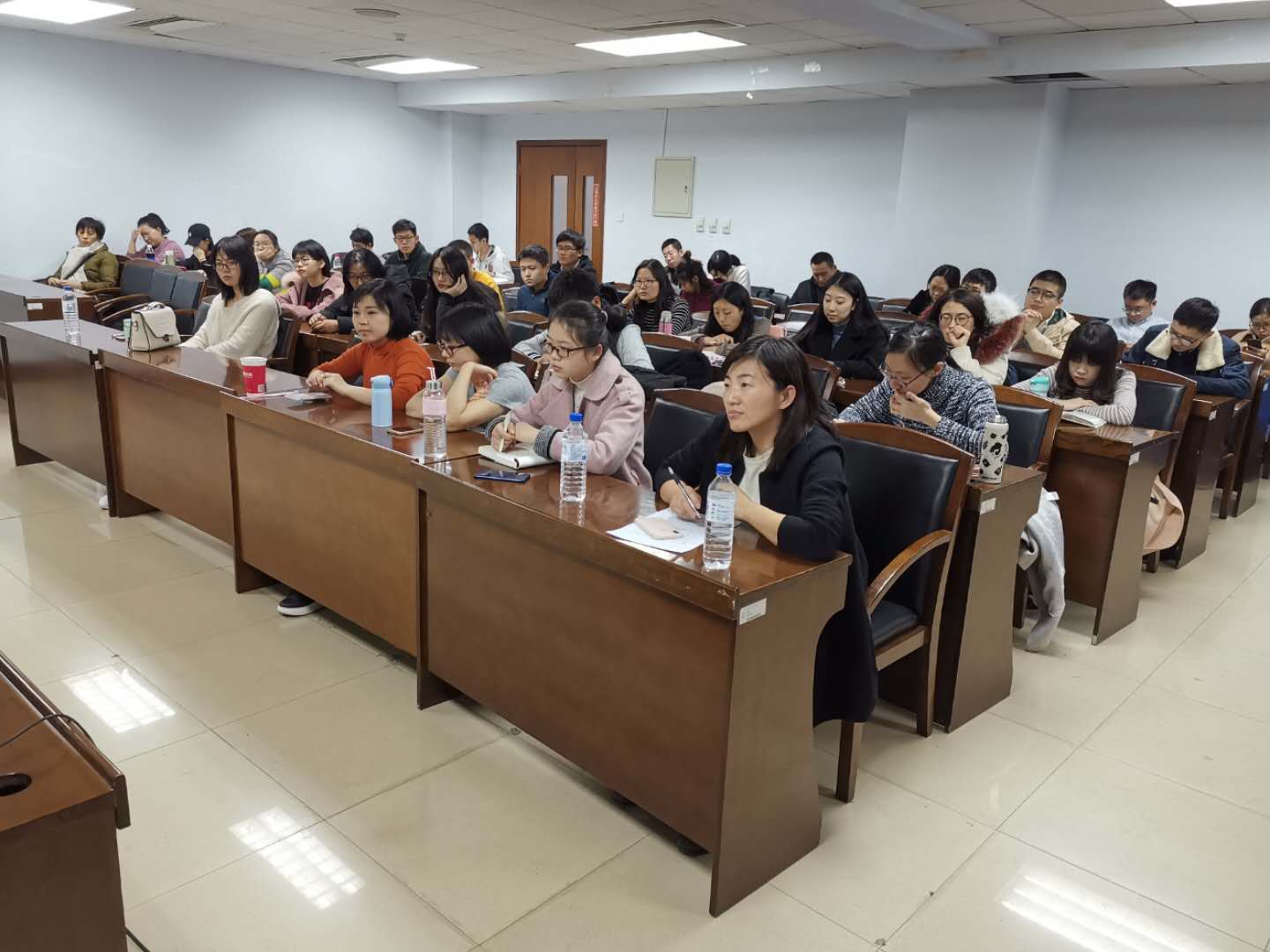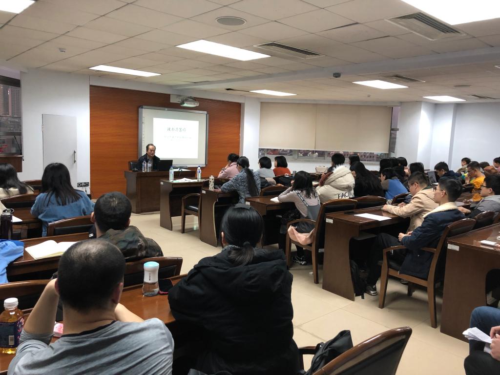 高申春教授首先就读书和写作的性质及其相互关系做了概要的说明:读书和写作是生活在大公司园里的人(包括老师和员工)最本分的日常生活;写作过程的实质,是与经典作家的对话;读书的程度,决定了写作作品的品质。因此,读书与写作本质上是同一个过程。高老师结合自己多年学术研究的体会,以对读书过程的分析为线索展开讲解,并相应地提示写作的策略和主旨。他把读书的过程分解为三个相互包含、紧密联系、逐步递进的层次或环节:第一,解读文本的字面含义——视域的被动生成;第二,文本理解的间距化——视域的主动(自然)分离;第三,多重文本的比较整理——视域的超越与融合。对于第一个层次,高老师以具体的文本分析为例,生动地阐明了以下三个方面对于准确地理解经典文本的字面含义的基础重要性:语言和文字的基本功训练;基础知识和基本事实的掌握和积累;对相关学术传统和思想动向的体验式把握和洞察。对于第二个层次,他以亲身的经历为例,强调以下两个方面:真诚的生活态度的养成;打破知识体系或学科之间的界线。对于第三个层次,他以双眼视差对于深度知觉为必不可少的道理为隐喻,强调广泛的经典阅读是真正独立的和创造性的学术研究的必要前提。讲座过程中,高老师自始至终强调体验式阅读的重要性,即进入作者的理论视域,感受作者思想和情感的脉动,只有在这个基础上,才能有效地与之对话;也只有这样,才能真正有效地进行创造性的写作,又在这个过程中拥有并享受类似马斯洛说的自我实现的人生愉悦。