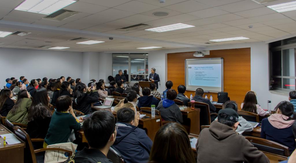 最后,讲座在掌声中拉下帷幕,担当此次讲座韩国语翻译的哲学系元永浩教授做了简短的总结。他认为韩相震教授自身是一个十分具有全球性的知名学者,他游走于美国,法国,德国,阿根廷等欧美和拉美国家,试图将东亚的儒家思想和佛教思想等东亚思想传统置于全球化变迁的脉络中深入研究,特别是发现东西方社会思想产生共鸣的本体论和认识论条件,最后聚焦于bv伟德国际1946官网已故哲学家高清海先生的“类哲学”思想,并试图挖掘其背后的世界主义的思想意义,对于将bv伟德国际1946的哲学传统向全世界传播起到重要作用,同时对于将中国的哲学社会思想纳入全球风险社会治理体系去反思也具有十分重要的意义。