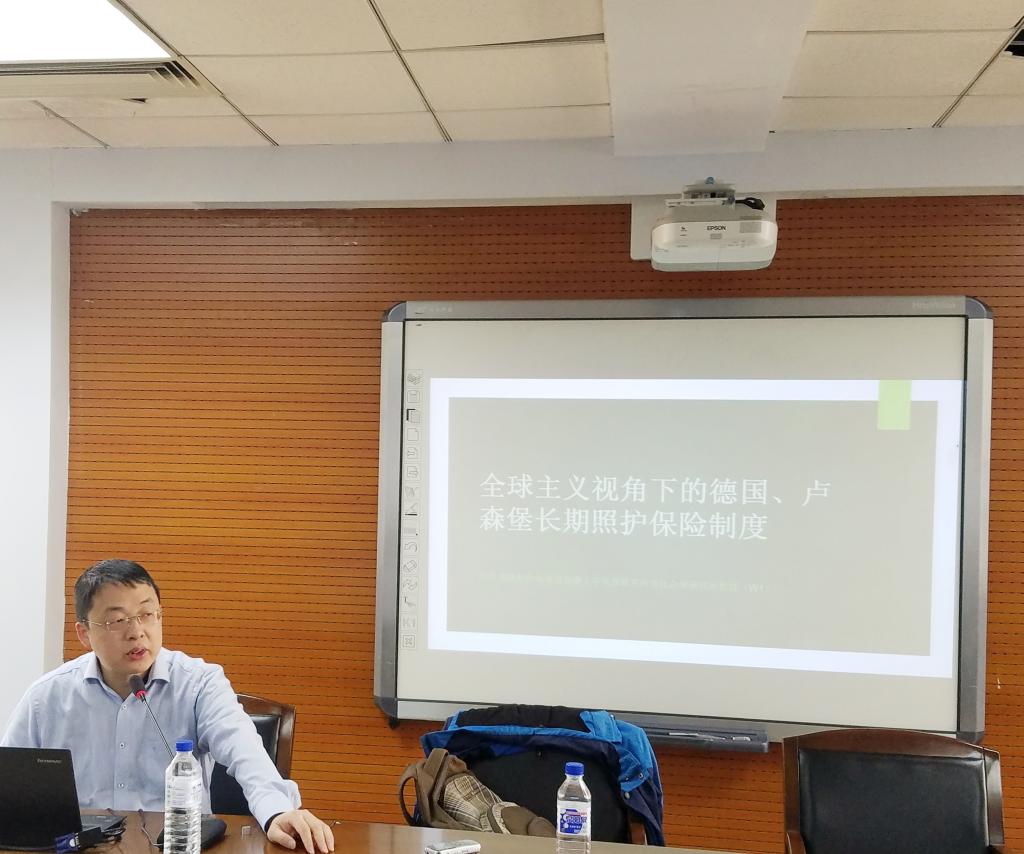 2018年9月6日上午9点30分,德国杜伊斯堡及埃森大学教授、博士生导师、教授协会会员刘涛老师,在bv伟德国际1946东荣大厦九楼会议室做了题为“全球化视野下的德国和卢森堡长期护理保险制度”的学术讲座。本次讲座由公司贾玉娇教授主持,吸引了众多同学前来聆听学习,刘涛老师的精彩讲座也给在座的同学们带了一场学术上“饕餮盛宴”。