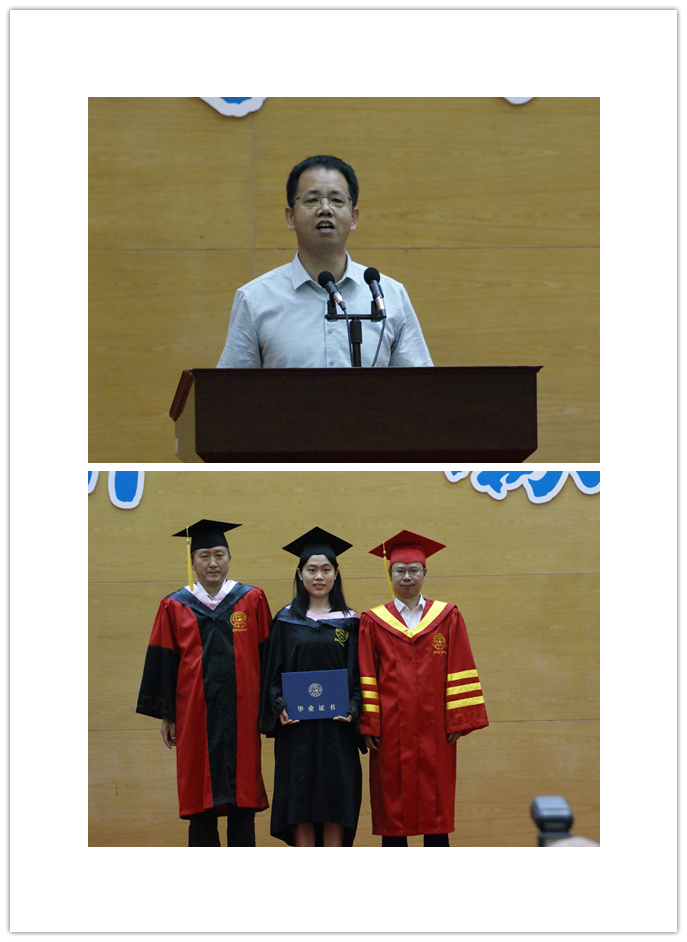 随着音乐的响起,经理田毅鹏教授和学位委员会主任贺来教授缓缓走上讲台,为本科、博士与硕士毕业生依次颁发毕业证书。贺来教授为毕业生拨穗,田毅鹏教授亲自向毕业生授予毕业证书。同学们心怀感恩,激动地同两位教授一一握手,并合影留念。