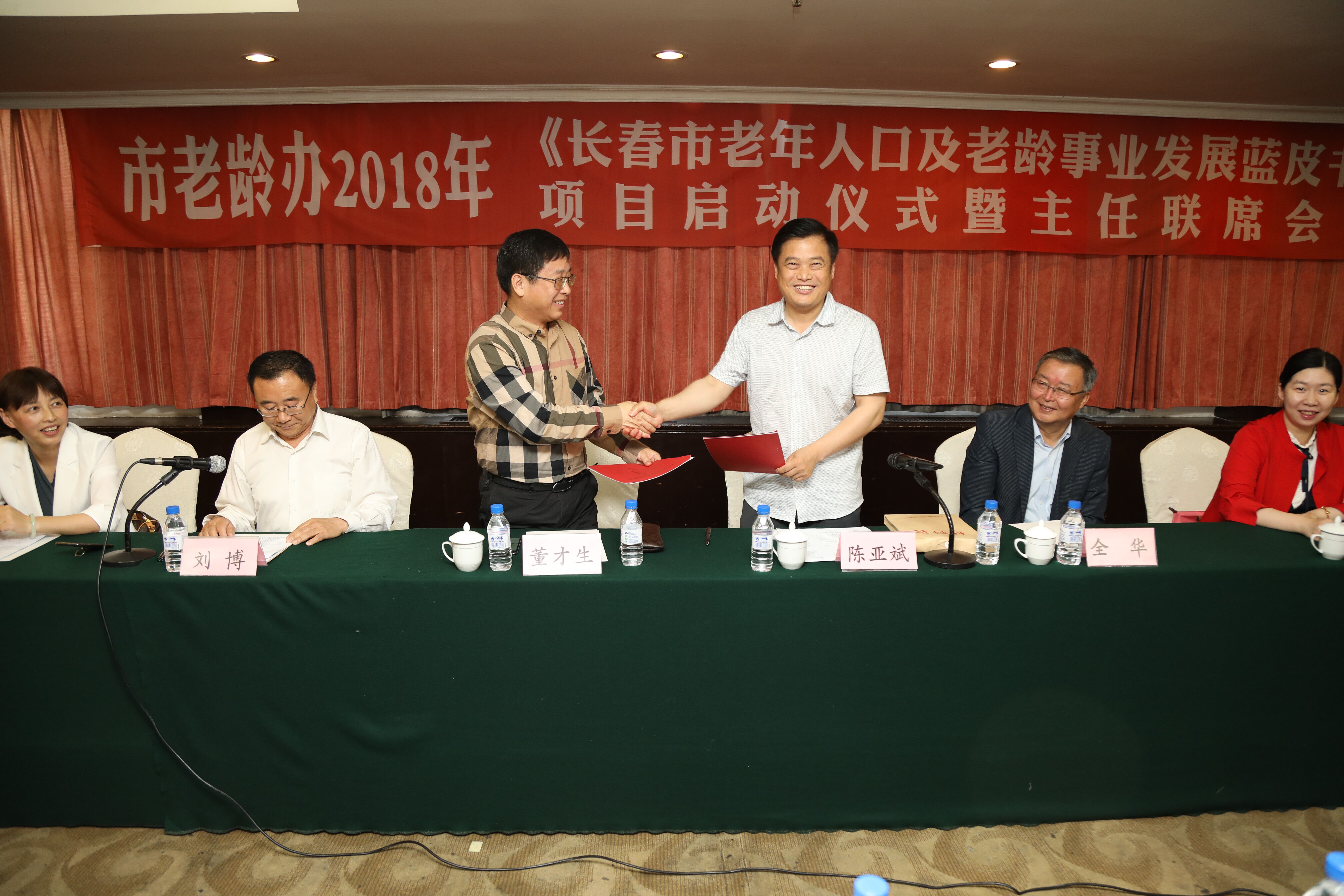 本次签订的《长春市老龄人口及老龄事业发展蓝皮书(2019)》合作研究项目,将依据十九大报告和国家老龄事业“十三五”规划等重要战略部署,围绕养老保障、养老服务、老年健康、老年教育、社会参与、老龄产业、老人权益、适老环境、老年优待、养老体制等十大方面探讨长春市大老龄体系的建设和提升,并实时把握长春市老龄人口变动状况以及老龄事业发展面临的新机遇、新挑战。该项目将在长春市公安局、长春市卫计委、长春市民政局、长春市发改委、长春市统计局等多个政府部门的支持下,在长春市所辖七区、两市、一县和两个开发区老龄办的配合下,按照长春市148万老龄人口的1%进行抽样,发放15000份问卷,并深入到典型社区、村进行访谈,并最终形成《长春市老龄人口及老龄事业发展蓝皮书(2019)》。