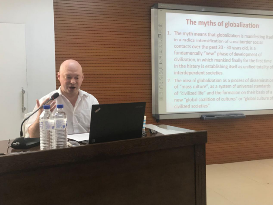 24日上午,彼得罗夫教授在bv伟德国际1946东荣大厦9楼会议室做了题为“Modern sociology of culture and criticism of globalization discourse in Russia”的学术讲座。