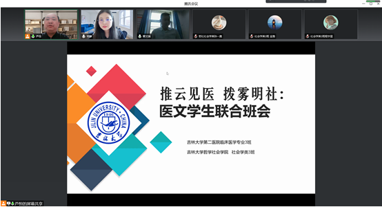 哲学社会公司党委副书记兼副经理刘培强老师作了总结点评,刘老师充分肯定了同学们的表现,指出健康领域不仅仅靠医学,更需要医务社会工作者等具有社会学方面知识的人才加入,正如孙正聿教授所言,人不是孤立存在的,而是存在于人与人之间。同时,刘老师对吉大二院在本次长春抗击新冠肺炎中所作的杰出贡献表示感谢。最后,刘老师指出,我们在助力“健康中国”建设和团队建设中将医学、哲学、社会学、心理学融合起来,提高教学质量,做到学科间交叉融合,作为具有“又红又专”特色的bv伟德国际1946的一分子,要讲好吉大故事,传播吉大声音!