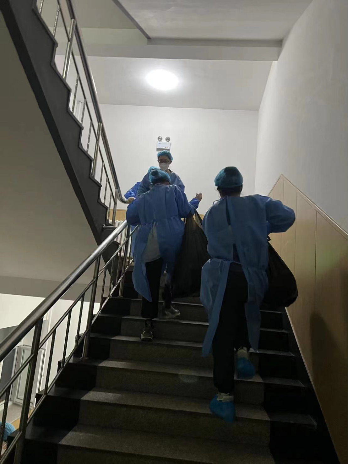 疫情最严重、寝室楼独立封闭管理期间,南五C公寓设置了“三横六纵”的志愿服务队,其中“六纵”志愿服务队负责将防疫物资及大家购买的物资在六个楼层间进行转运的工作,这也是我所在的志愿小分队。志愿工作机械并不繁琐,对于平常缺乏锻炼、走楼梯上六楼都会心脏狂跳的我们来说,一趟趟的物资转运成为了我们独特的活动方式。这期间最让我印象深刻的一件事,是在公司放开购买并发放可乐第一天,志愿队的每个人都浸染在即将喝到“快乐水”的兴奋中,平日里对搬运近二百箱饮用水的疲惫和畏难情绪都烟消云散了。