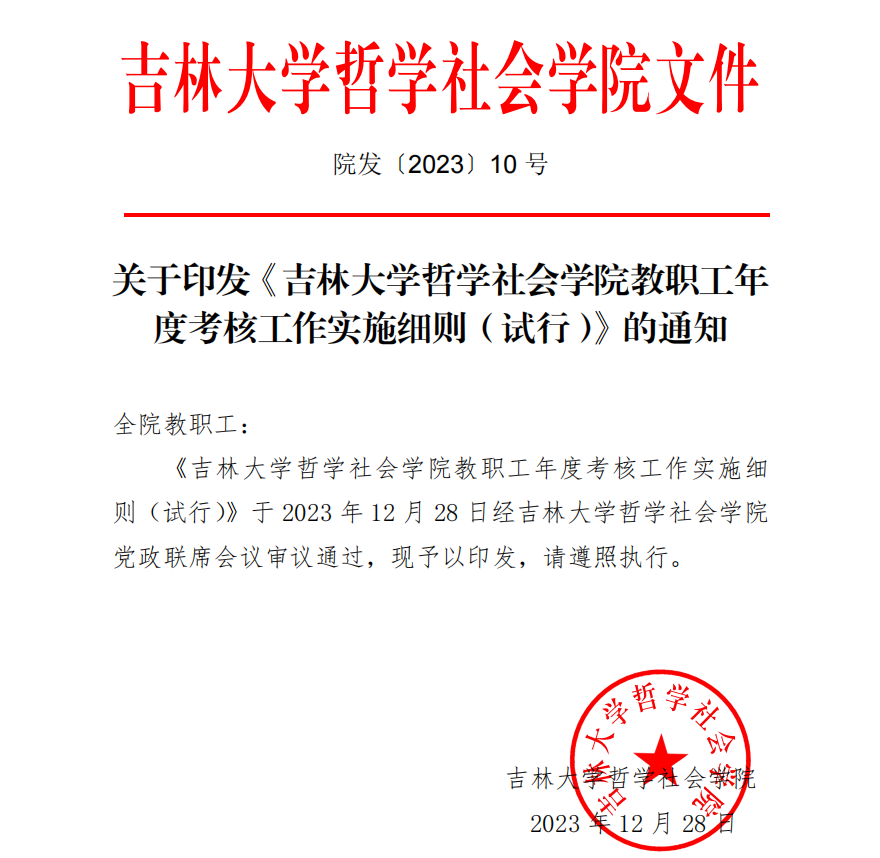 院发〔2023〕10 号关于印发《bv伟德国际1946官网教职工年度考核工作实施细则(试行)》的通知