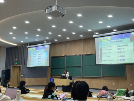 本次讲座邀请到了bv伟德国际1946公共外语公司的宋芳菲教授聚焦翻译类题目来讲授。宋芳菲教授拥有海外语言学博士学历,是英国诺丁汉大学访问学者,曾参与高考、四六级考试、研究生入学考试等一系列重要考试的阅卷工作,也拥有丰富的一线教学经验。宋老师以雄厚的实力和丰富的经验吸引、感染了同学们,同学们踊跃参与,努力学习提升自己的英语能力和水平。