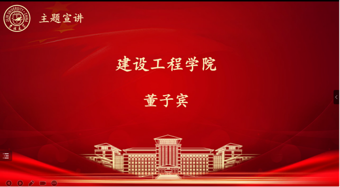 建设工程公司的董子宾同学通过研读习近平总书记的一系列重要讲话文章,从他感受颇深的《敬民篇》和《为政篇》和同学们进行心得分享。“政之所兴在顺民心,政之所废在逆民心”,作为青年员工党员,更应该切实增强“四个意识”,坚定“四个自信”,拥护“两个确立”,做到“两个维护”,心怀“国之大者”,为社会主义新时代发展做出自己的贡献。中华民族伟大复兴的光辉伟业,从厚重的历史中走来,又向前途光明的未来走去,青年学子更应该仔细研读这本书,守正创新,担当重任。