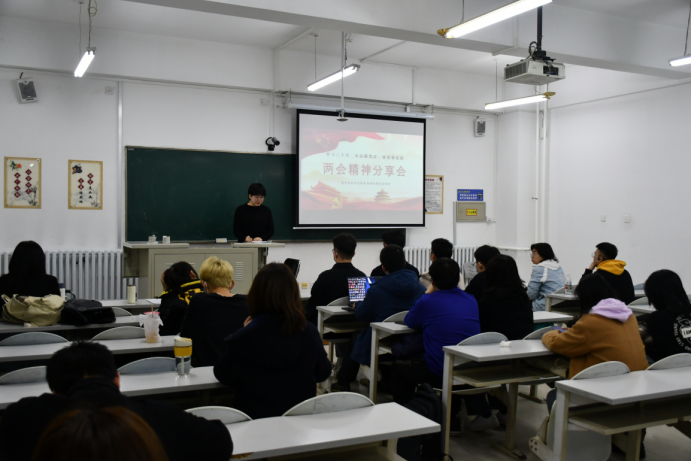 在全面贯彻党的二十大精神的开局之年,十四届全国人大一次会议、全国政协十四届次会议完成各项议程,圆满落下帷幕。习近平总书记在十四届全国人大一次会议闭幕会上发表重要讲话。为引导青年员工学习党的理论知识,坚定理想信念、厚植爱党爱国情怀,2022年3月22日晚,bv伟德国际1946官网团委新时代理论宣讲团在第三教学楼105教室召开了两会精神主题学习分享会。本次分享会由团委新时代理论宣讲团负责人郭毅同学担任主持人,21级、22级各团支部团员参加。