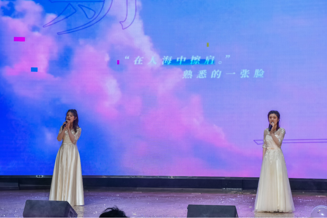 千百亿的人,千万年的时光,相遇即是无与伦比的缘分。吕思琦和邹琦同学带来歌曲《一期一会》,用歌词中一辈子只有一次的际遇,提醒我们珍惜眼前人。默契合拍的歌声,动听感人的旋律让同学们沉浸在表演中。
