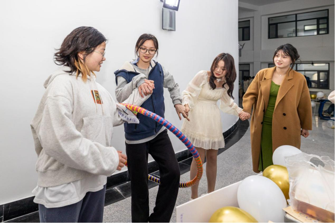 16时起,由公司社团联合会和生活管理委员会共同承办的“社团游戏角”率先与大家见面。妙趣横生的方言传递、争分夺秒的时间竞赛、包含专业知识科普的投壶游戏……8家社团,8个摊位,为大家提供着丰富多彩的互动游戏,同学们的欢声笑语为接下来的正式演出拉开帷幕。