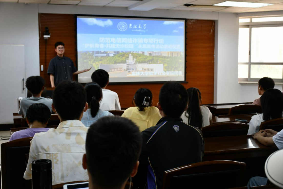 本次活动中,一线民警为大家做了一堂反诈专题宣传讲座。师生们认真倾听着民警的授课内容,认识到了电信诈骗的主要类型、运行原理、严重危害,并从民警同志提出的几点对策出发,思考如何预防电信诈骗,确保自己的人身安全。
