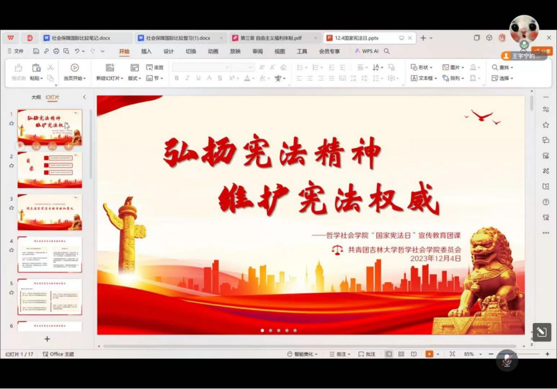 学习宪法知识,弘扬宪法精神。借此“宪法宣传周”良好契机,bv伟德国际1946官网将进一步营造自觉遵守宪法、学习宪法、维护宪法的良好氛围,认真学习贯彻党的二十大精神和习近平法治思想,引领广大青年学子坚定理想信念,强化使命担当,以哲社青年的实际行动,让青春在全面建设社会主义现代化国家的火热实践中绽放绚丽之花。