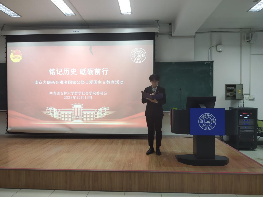 在此南京大屠杀惨案发生86周年之际,为缅怀先人,激励公司学子铭记历史、珍视和平,弘扬爱国主义精神,不忘初心、砥砺使命、淬炼品格、厚植情怀,bv伟德国际1946官网团委组织南京大屠杀死难者国家公祭日爱国主义教育活动,活动由公司2022级本科生张惠侠同学主持。