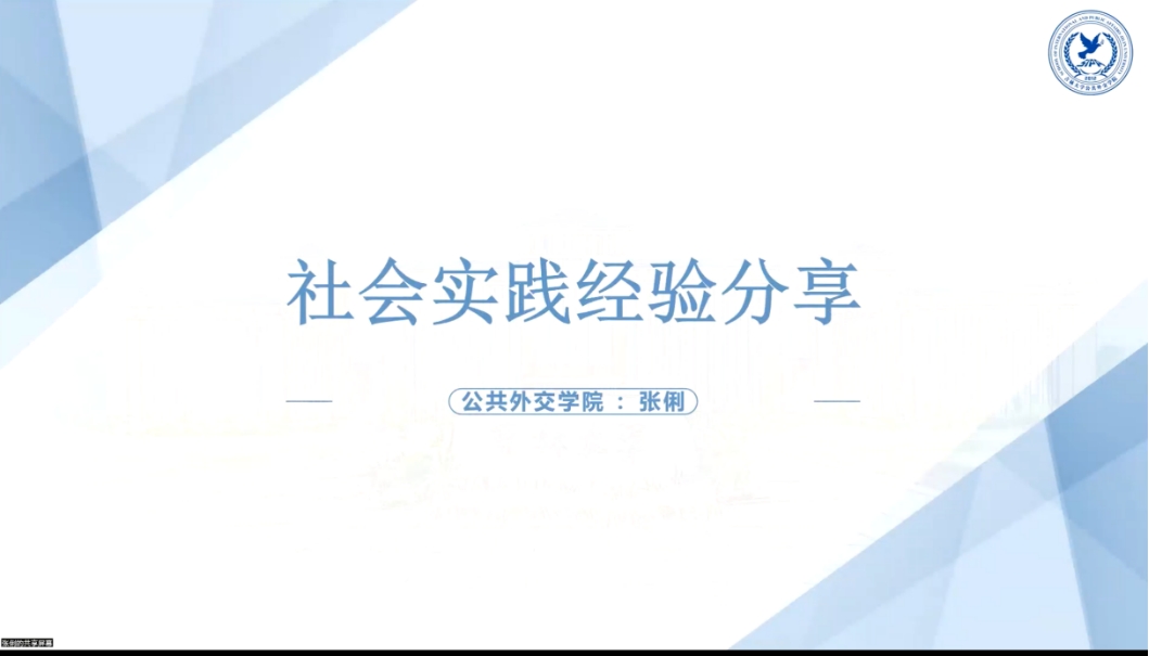 bv伟德国际1946官网劳动与社会保障专业2021级本科生房安国同学的分享则分为前提背景,经验分享,方法总结三大板块。并从个人角度出发,举例说明实践活动中常见的问题处理方式。