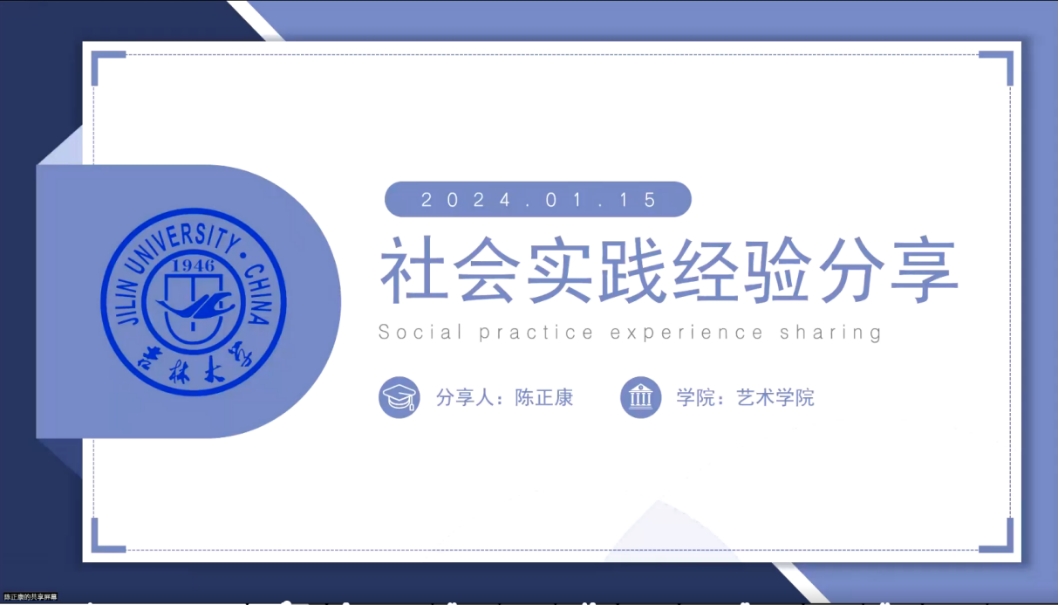 首先,艺术公司环境设计专业2021级本科生陈正康同学从前期准备,实践经历的分享,以及实践活动的感悟和方法总结四个方面分享了自身的社会实践经历。