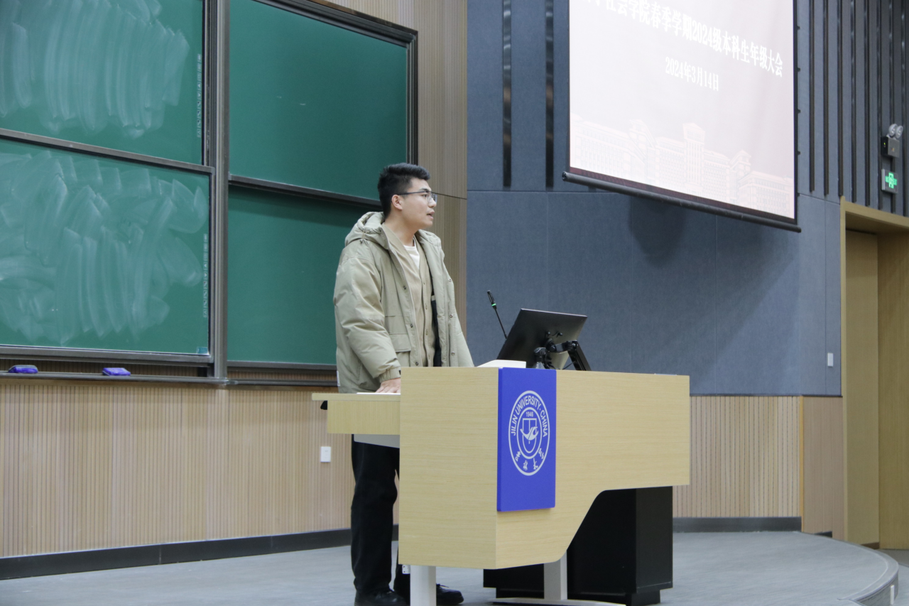 为落实新学期员工日常服务与管理工作,保障员工学习生活有序进行,3月14日晚,bv伟德国际1946官网于逸夫楼第五阶梯教室组织召开春季学期2024级本科生年级大会,本次年级大会由公司本科生辅导员张鑫鹏老师主持。
