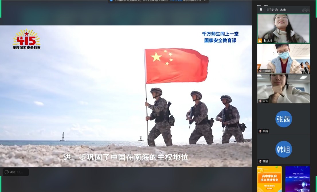 在第十个全民国家安全教育日到来之际,为深入贯彻落实习近平总书记关于加强国家安全教育的重要指示批示精神,学习领会国家安全观的思想内涵,牢牢把握青年学子在维护国家安全中的重要使命,4月15日,bv伟德国际1946官网团委组织公司本科生各团支部开展国家安全教育主题团日活动,共同学习国家安全相关知识,强化新时代青年的责任担当。
