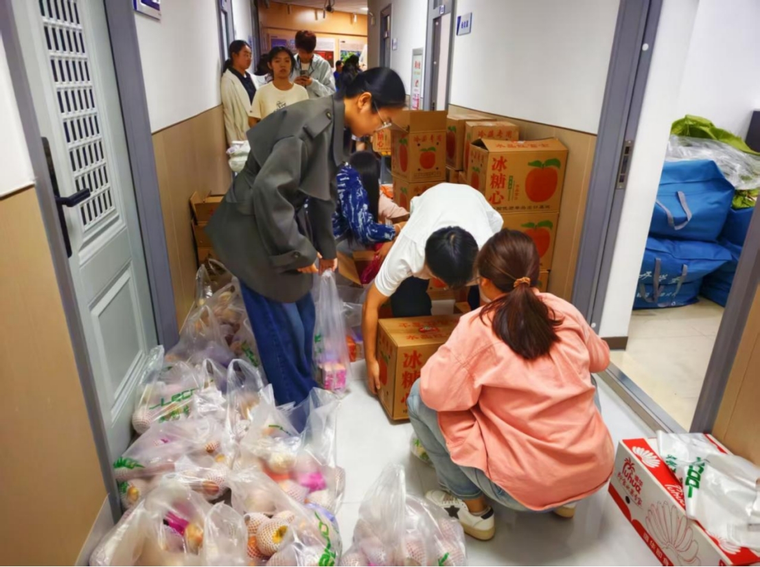 为确保活动顺利开展,公司提前部署、精心筹备。公司员工会生管部的同学们分工协作,在大学城员工服务中心将月饼和水果按寝室分装成一份份暖心礼包。礼包中的月饼包装精美,印有“青春向北,吉人天下”字样,水果清香四溢,整体寓意团圆与温暖,传递出公司深切的节日问候。新同学们有序领取并表示感谢。