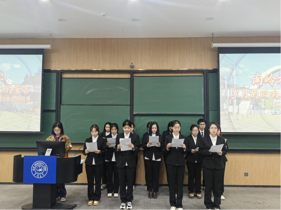 比赛伊始,参赛班级同学们通过朗诵、表演等多种形式,为在场师生展示出一幅bv伟德国际1946英才济济、薪火相传的壮丽画卷。一段段生动的表演与展现,不仅回顾了各校区的发展足迹,更让在场同学们体会到“求实创新、励志图强”的校训精神。这既是一堂生动的微团课,也更是一场深刻的精神洗礼,让在场师生们真切地看到吉大精神闪烁在每一个追求真知、服务家国的吉大身影中。