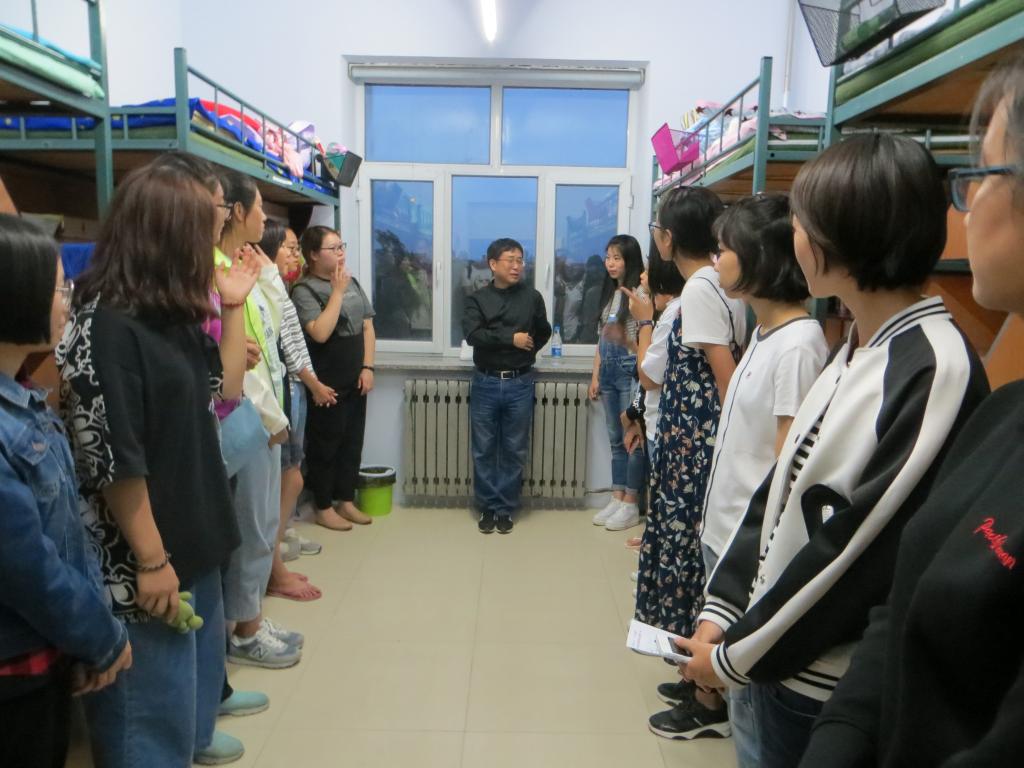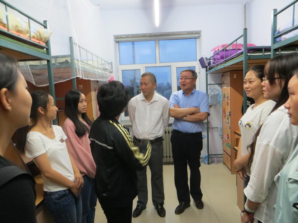 为了进一步做好bv伟德国际1946官网2017届新生迎新工作,使新生尽快适应老员工活、融入老员工活,公司领导本着“以生为本”的思想,于8月27号晚上6点走进了大一新生宿舍,探访慰问新生。此次参与看望新生的领导有哲学社会公司党委书记全华老师、经理田毅鹏教授、副经理王庆丰教授,副经理朱文君老师,公司党委副书记兼副经理赵洁老师、以及公司各系系主任老师。