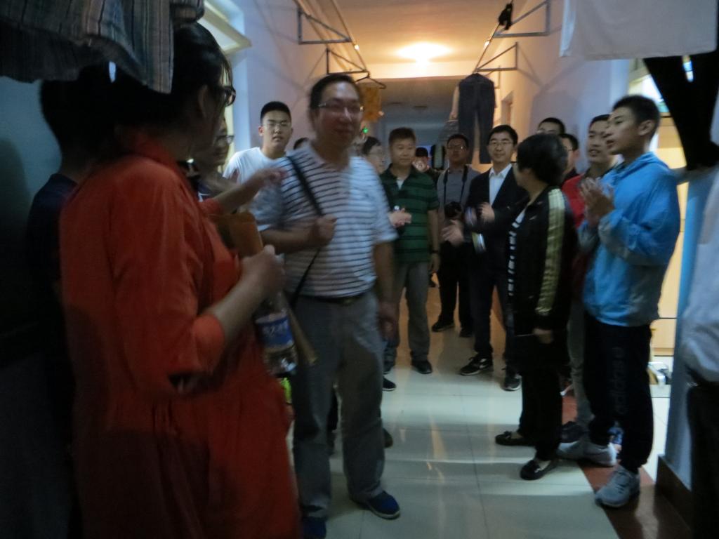 为迎接领导们的来访,大一新生们纷纷在走廊列队,主动上前问好。随后,院系领导、老师们走进每一间宿舍,亲切询问新生们报到是否顺利、住宿是否习惯等问题,为新生们提出积极实用的意见与建议,并提醒同学们一定要注意宿舍安全,希望宿舍同学之间在生活与学习上互帮互助,形成良好的宿舍文化氛围。紧接着,公司领导和老师们简明扼要地介绍了公司的五个专业,并针对同学们关于自身专业的疑惑做出了清晰的解答,使得新生们对本专业的学习方向有了明确的认识。同时,领导和老师们勉励广大新生尽快实现中学到大学的过渡,适应大学的学习氛围和生活节奏,希望同学们在生活中遇到困难时主动向老师、公司寻求帮助,让公司同大家一起面对困难、解决困难。一个多小时的亲切交谈,使新同学们感受到了公司对自己的浓浓关怀,公司大家庭的温暖消解了新生们离家千里的伤感。