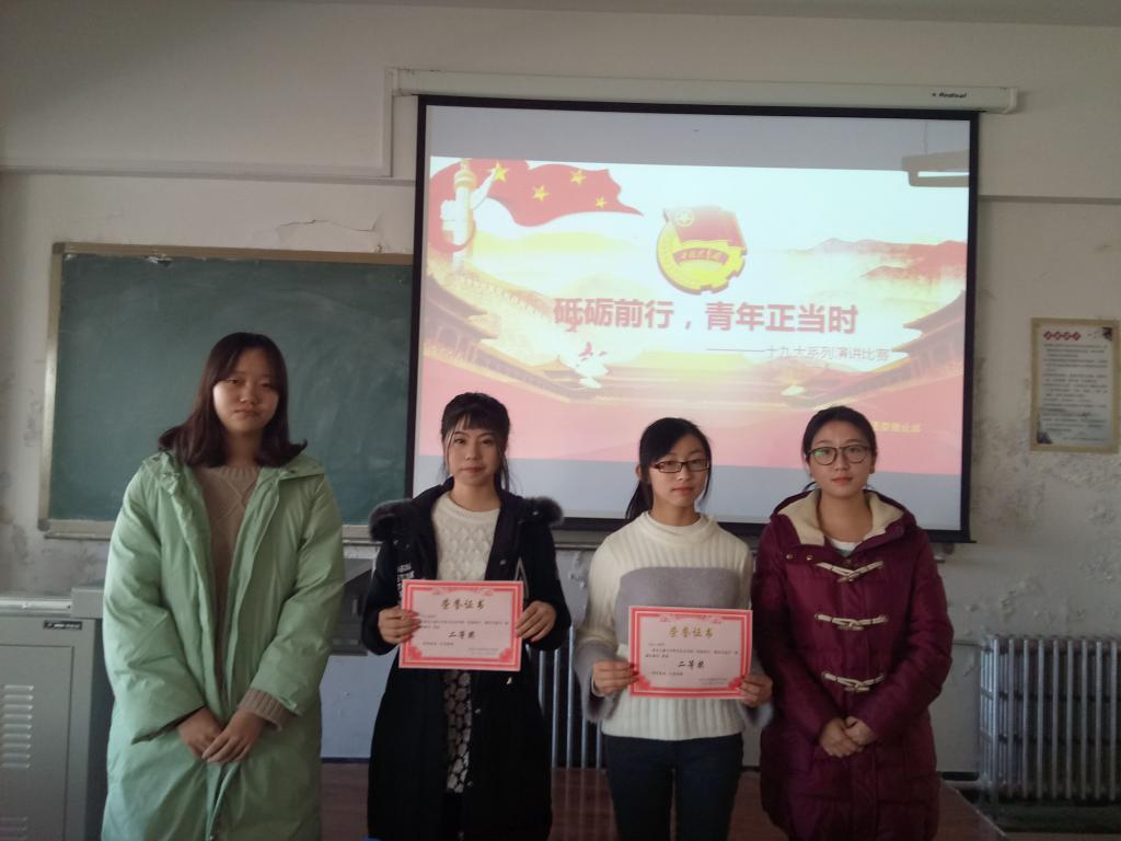 本次比赛既是同学们充分展现自己的才华的舞台,更是学习十九大精神的鲜活的课堂。通过本次比赛,“青年强则国家强,青年兴则国家兴”的时代使命将深深印刻在我们心中,我们也会坚定信念,不忘初心,为实现中华民族伟大复兴的中国梦而不懈努力!