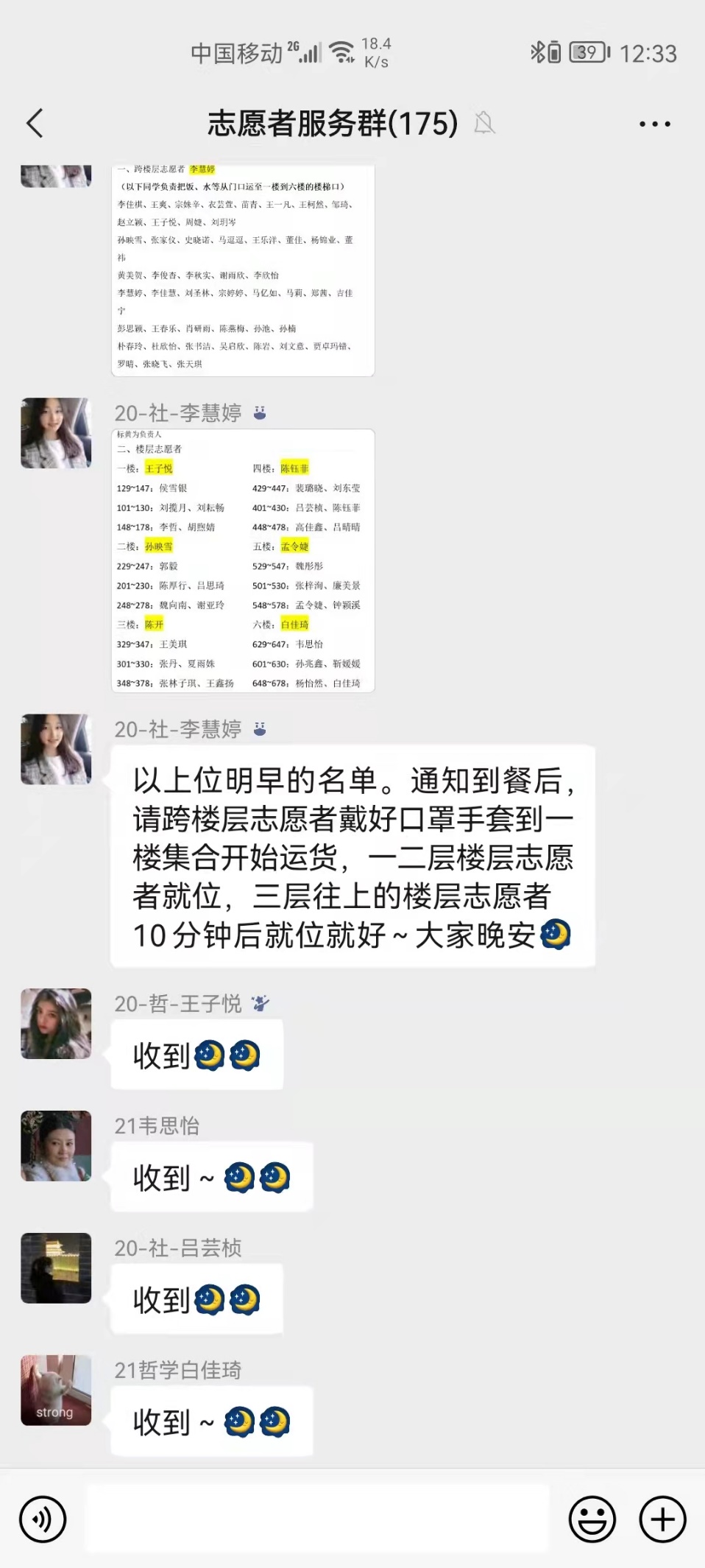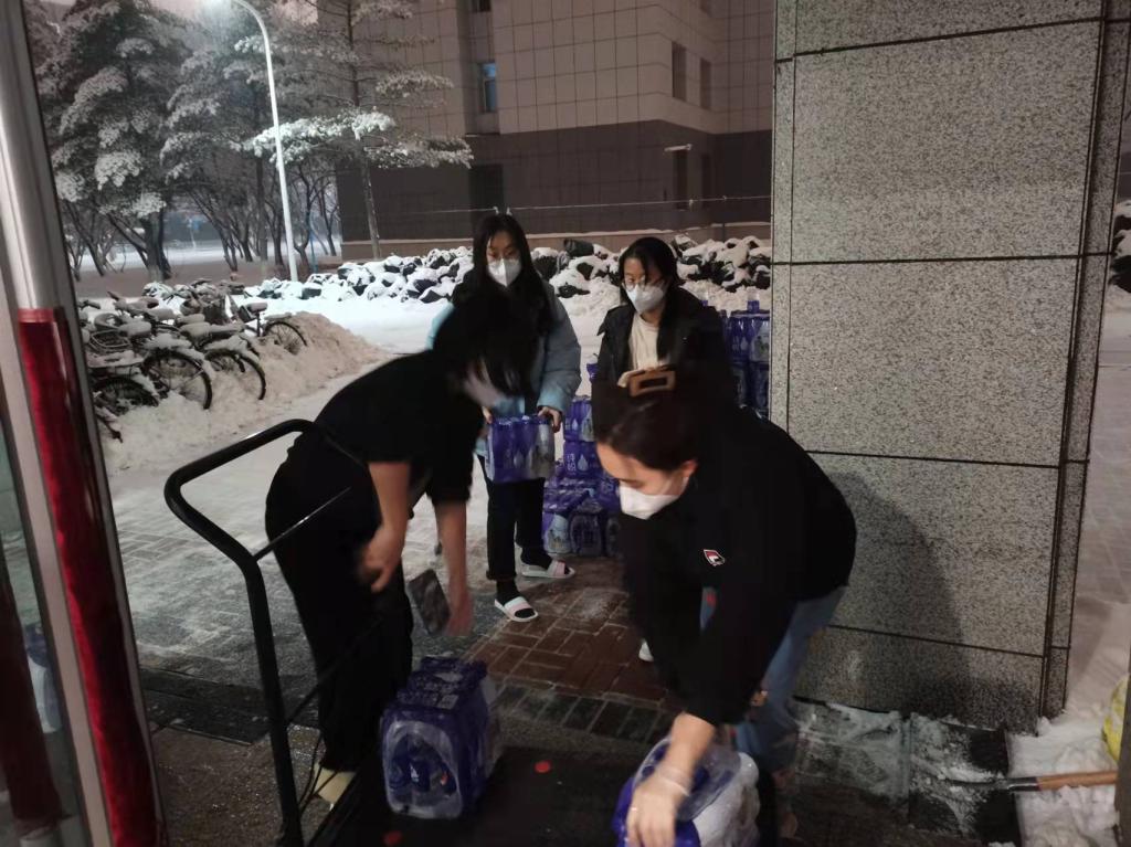 送水送餐做核酸,谁说女子不如男。接到通知后的十余分钟内,公司同学们迅速组成了一支近两百人的志愿者团队,女同学们巾帼不让须眉,瘦弱的身躯中爆发出强大的力量——几位志愿者需要搬着八个大箱子上到六楼,来回上上下下数十次——这些志愿者们一趟又一趟的忙碌,在室外零下几度的温度中,汗水打湿了衣服。在完成了自己的任务后,公司志愿者也会帮助其他公司进行防疫工作,将公司深厚的助人底蕴与人文关怀落到实处。